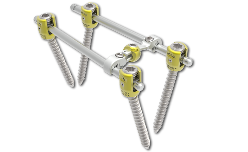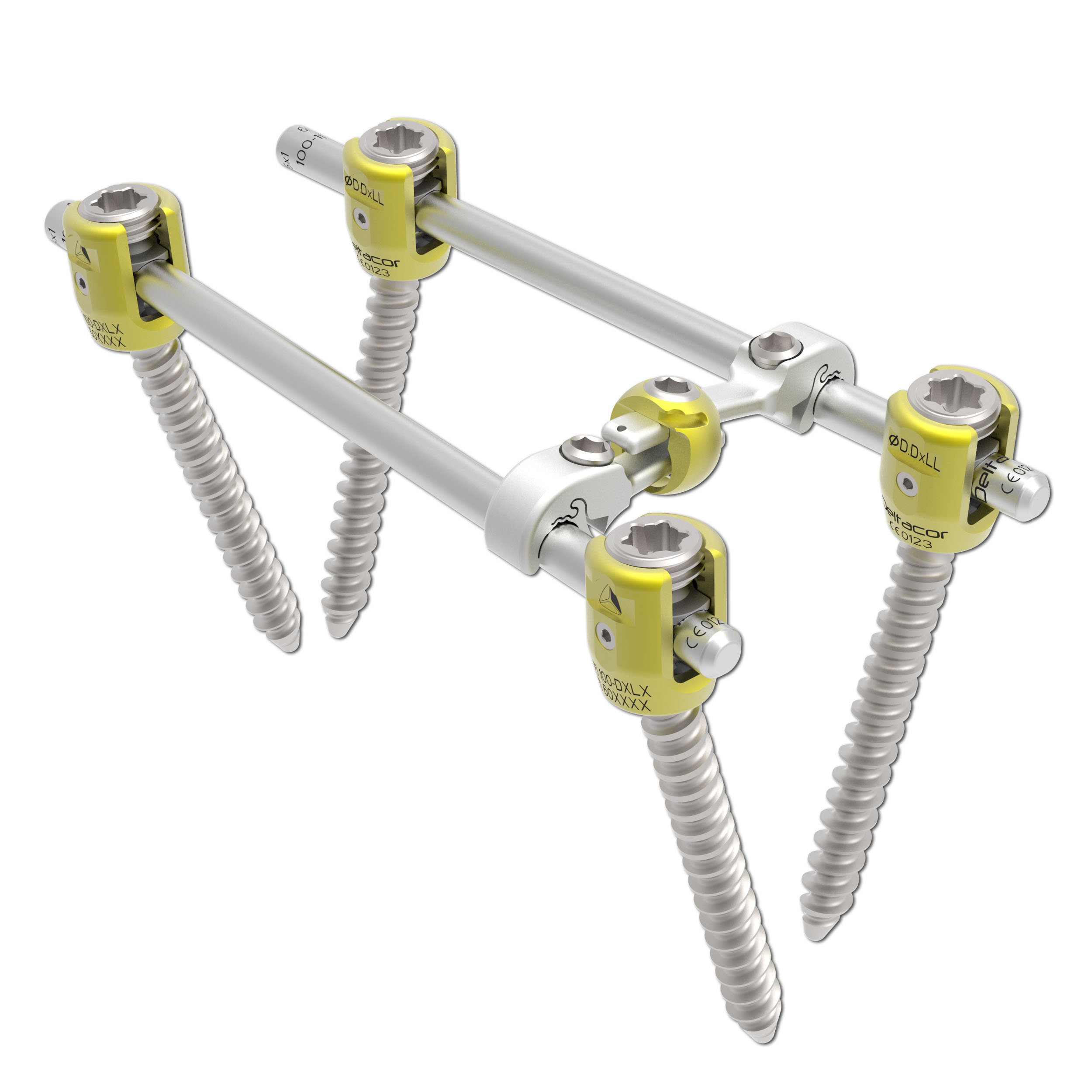 KINERA ist ein einzigartiges System auf dem Markt. Die Besonderheit liegt am Design des Schraubenkopfes. Medio-Lateral ist der Kopf schwenkbar. Kranio-Kaudal ist der Kopf fixiert. Durch den Einsatz einer Wippe im Schraubenkopf, welche sowohl den Stab von der unteren, als auch von der oberen Seite umschließt, wird die notwendige Flexibilität auch in Kranio-Kaudaler Ebene gewährleistet.