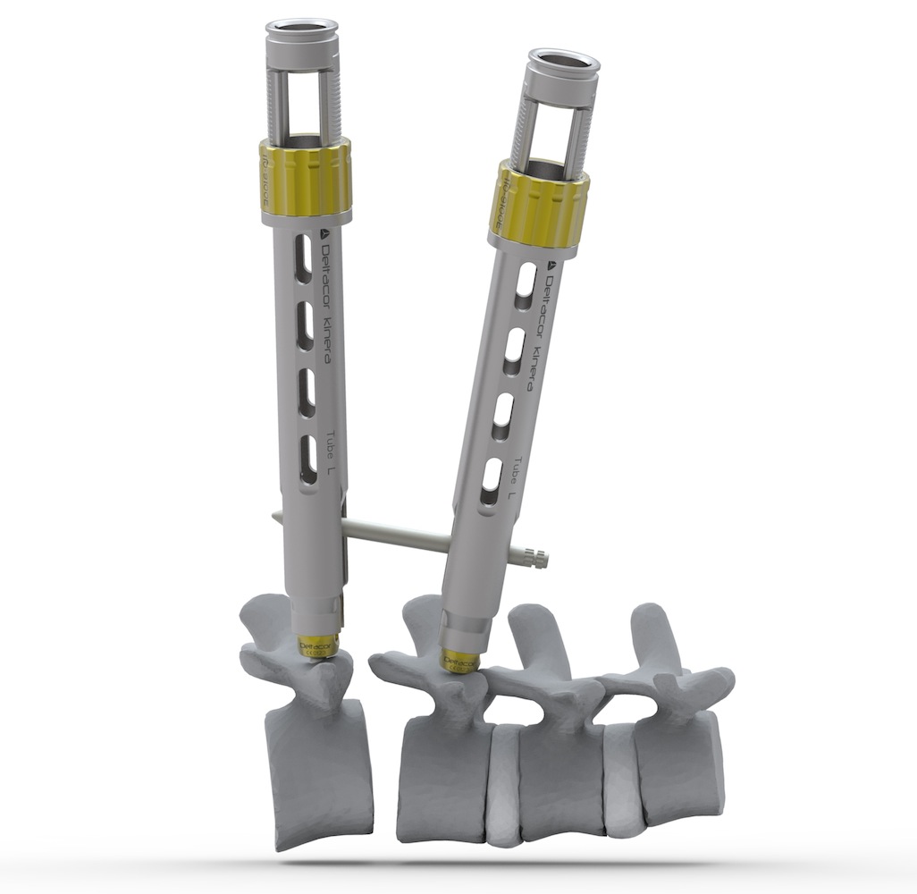 KINERA hat seinen Stärken insbesondere in der Reposition von Frakturen. Auf simpelste Art und Weise kann perkutan durch das einzigartige Schraubenkopfdesign reponiert bzw. lordosiert werden. Keine zusätzlichen Instrumente für die Aufrichtung des Wirbelkörpers sind notwendig. Die Reposition wird ausschließlich durch eine Manipulation der perkutanen Hülsen erziehlt.